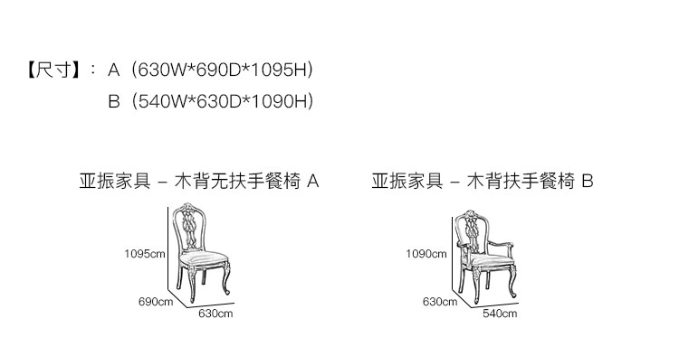 亚振家具 - 木背餐椅 产品尺寸/示意图