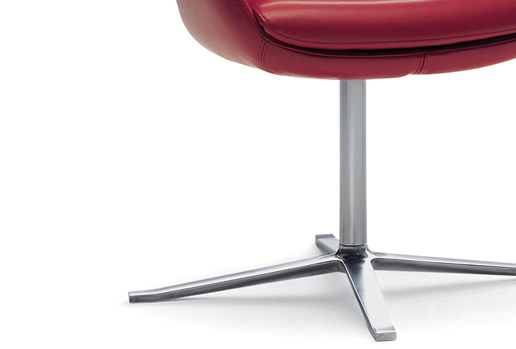 这是一张能提供豪华舒适感的软垫扶手椅。其轻柔的扶手,舒适的靠背,构成了线条迷人外形。依靠其细长的支架,椅子可以很随意的转动。同时与脚架类型相同的X茶几相配套。