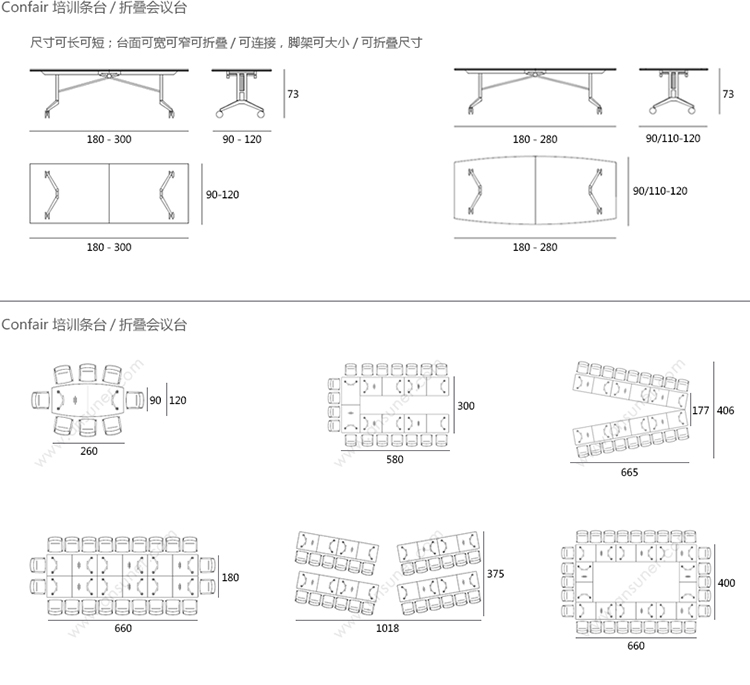Confair 折叠桌 系列尺寸/示意图