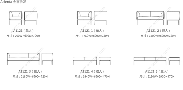 Asienta 会客沙发 系列尺寸/示意图