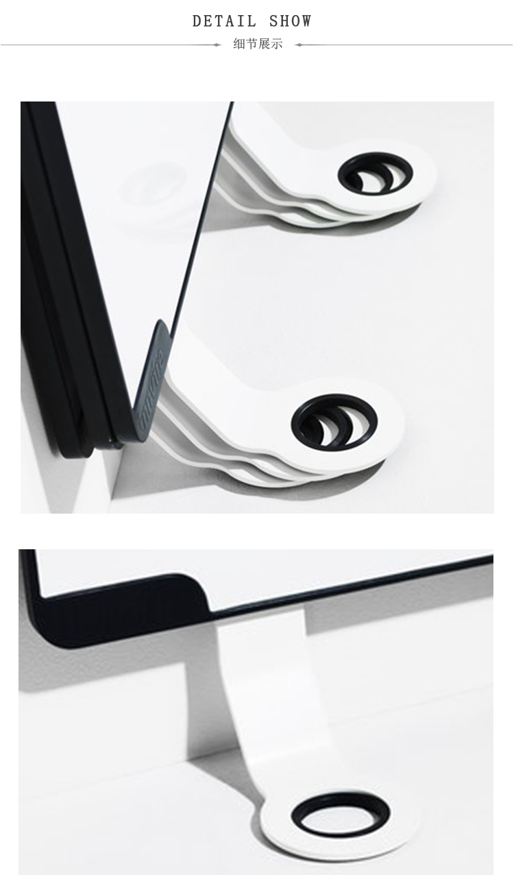 Sketchalot是一种独特的书写板,无需任何墙壁安装。该设计允许板垂直于墙壁倾斜。因此,Sketchalot非常适用于有玻璃或混凝土墙的环境,或者您不希望在墙上打洞的任何房间。电路板相互堆叠,便于存放。书写板由刨花板主体上的E3磁性搪瓷钢板组成。白色珐琅金属板背面。框架由模制的圆形凸起黑色塑料边缘组成。白色铝脚可以不用工具安装。这些板非常适合将多个板紧密地安装在一起。