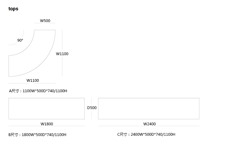 B:1800W*500D*740/1100H