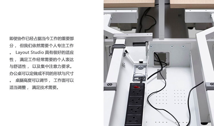 任何人都可以轻松地在Layout Studio中找到一个家庭基地。 它集成了个性化的工作工具和存储,可以在坐姿和站立高度的办公室景观中采用多种形式。 Layout Studio的选择也适用于组织。 它允许它们根据需要向上或向下扩展,以适应全局系统中的本地首选项。