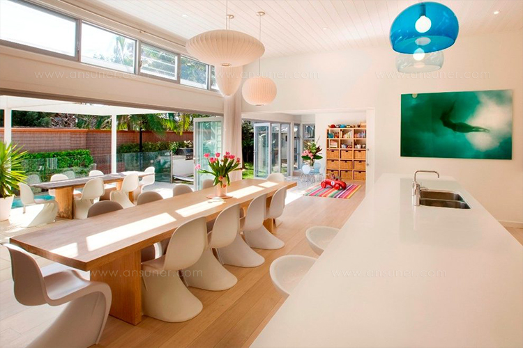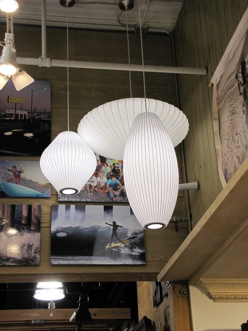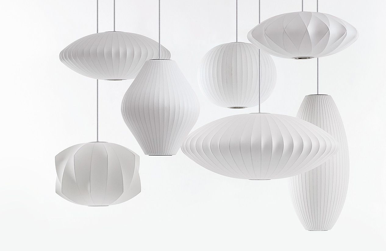 Nelson Cigar Bubble Pendant雪茄形气泡吊灯可以通过吊线板和6英寸长的吊绳悬挂在天花板上,散发出柔和均匀的光线。有小号、中号、大号和加大号几种不同规格。这些灯具最初生产于1952年,当时Nelson看到一组配有精心制作的丝质灯罩的瑞典吊灯,由此触发灵感。然而,吊灯的价格实在让人望而却步。Nelson决定设计制作自己的灯组,并且想出了用透明塑材代替真丝的创新工艺,使其能拥有更实惠的价格。
