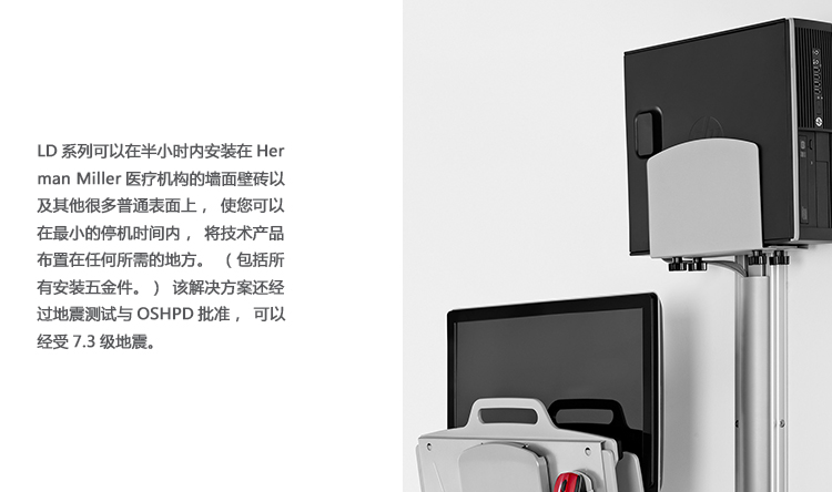 利用16英寸扩展臂,LD系列具有非凡的触及范围,可以将设备放置在您正好需要的地方,不使用时还可以向墙壁折叠。如此的活动范围使其成为医疗应用场合的理想解决方案,使护理人员可以与病人面对面交流,而无需在护理时要背向病人。