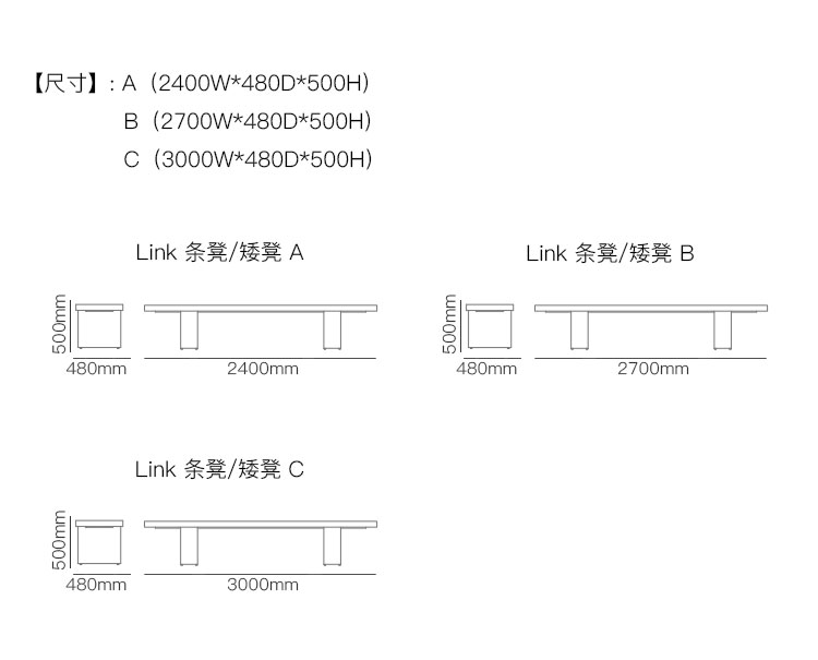 Link 条凳/矮凳 系列尺寸/示意图