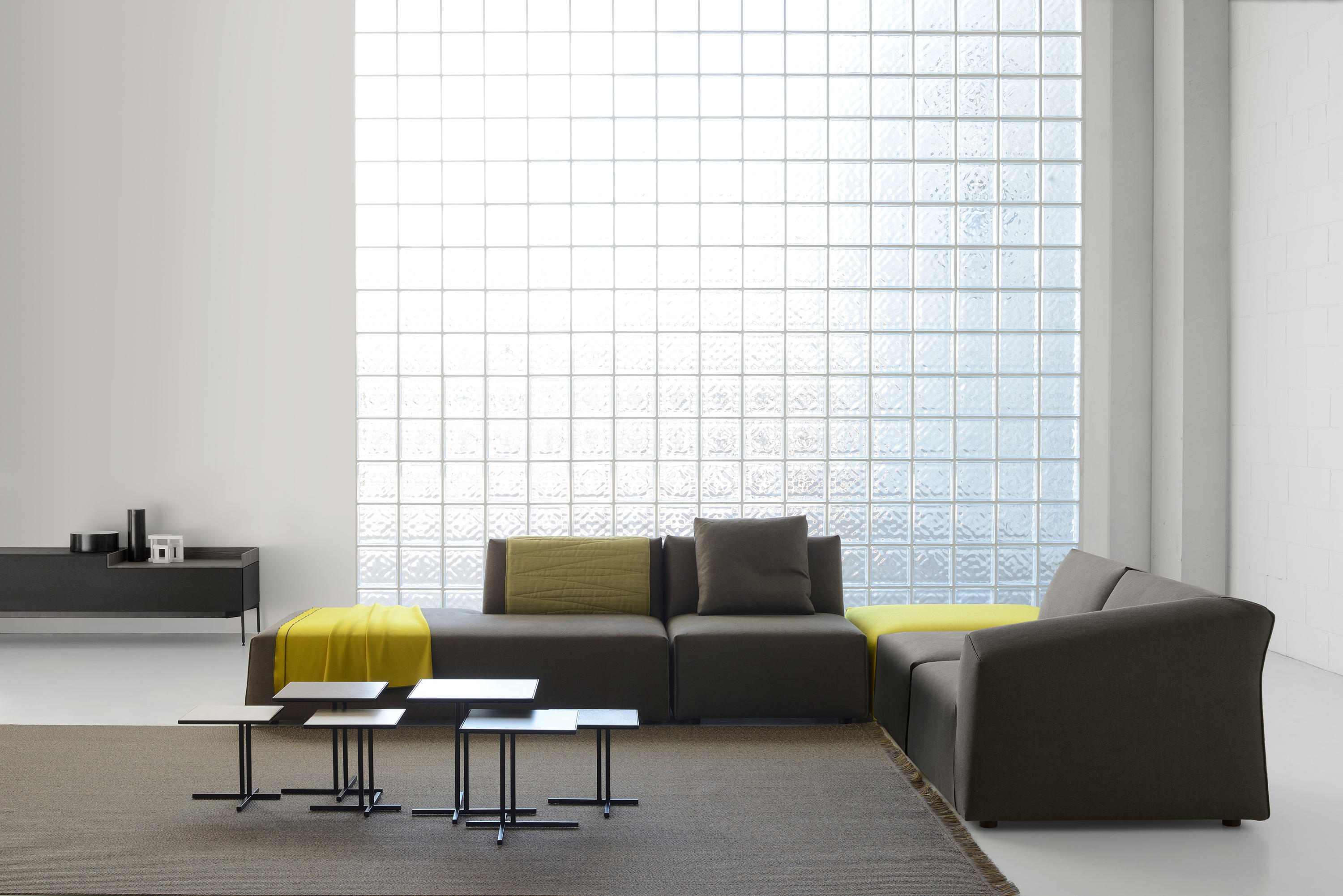 Thea是新的软垫系统,源自女性对形状的解释以及明显对立的指导原则之间的平衡:舒适,舒适-整洁,动态-严格,轻巧-高度紧凑。Thea的折衷主义在于对不同观点的和谐研究:正面正交,侧面倾斜和背面凹入。沙发具有高度的原创性和动感,只是因为它融合了所有这些语言:它是一种投射和形状的游戏,赋予其设计独特且可识别的标志。涂层增强了女人味:就像包裹包裹和垂褶的连衣裙一样,褶皱完美地粘在模块的形状上。通过使用不同的接缝,对剪裁细节以及意大利剪裁的要求给予特别关注。在三种不同的颜色(白色,鸽子灰色和无烟煤灰色)中应用偏斜接缝和对比度磨边,以定义角度,曲线和形状。五个功能性配件完善了产品系列:头枕,靠垫,方形垫子,被子和铝制托盘。