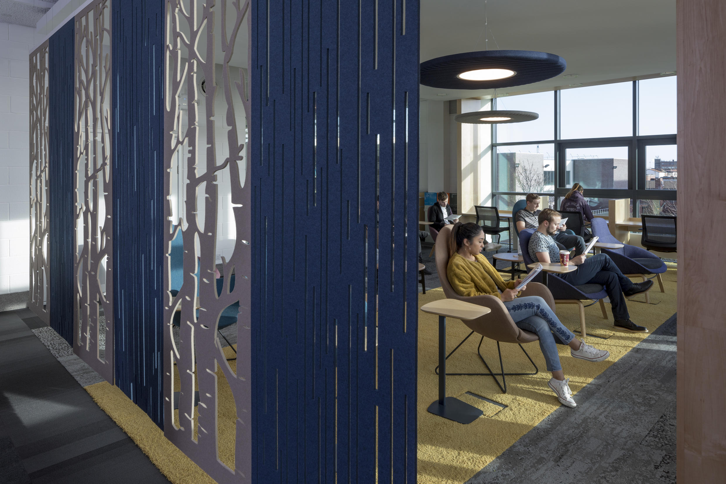 通过这种浮动的装饰面板集合创造一个隐私层,这些面板提供具有声学优势的艺术风格。它们将有助于减少声音的传递,并减轻诸如铃声之类的高音以及键入和点击的声音。它是一种优雅的元素,可将房间划分为一体。这些吸音板由双层BuzziFelt制成,采用大胆的图案进行精确切割,并具有一系列亲生物和几何图案。 您可以选择将BuzziFalls安装在墙壁或天花板上还是悬挂在上面。BuzziFalls Rail是另一种选择,它可使面板轻松滑动-创建可移动的房间隔板,从私人空间转移到公共空间。 面板在一条三米长的轨道上运行,面板从左向右滑动。通过为导轨安装两层平行轨道来创建滑动门的效果。 使用可用的新材料选项BuzziFelt Printed将BuzziFalls提升到一个新的水平 。如果您无法决定自己的喜好,请从10张照片中进行选择,并选择一张或两张照片的组合来选择不同的外观。 吸音毛毡结构可确保从正面到背面都具有充分的声学性能。它减轻了区域之间的声音传递,并吸收了高频音调,例如同事的颤音,敲打声或铃声,这使其成为开放空间中的理想空间分隔器。