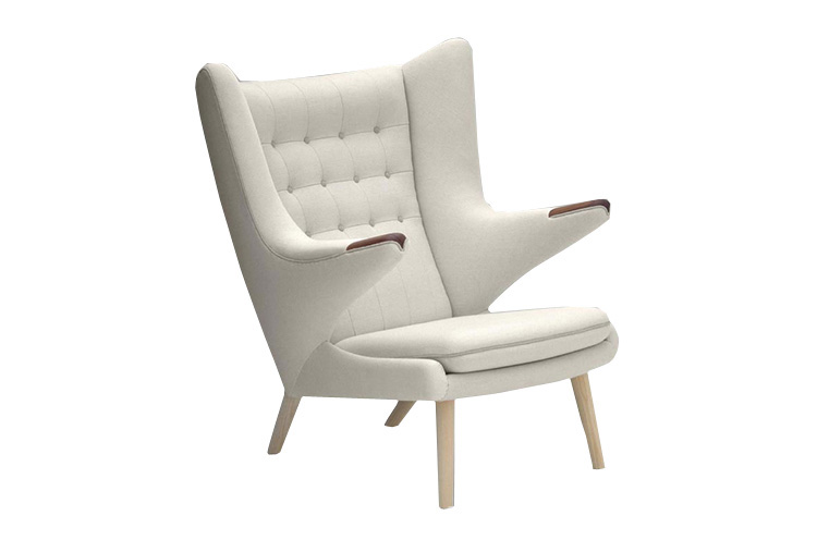 "熊椅(Papa Bear Chair)是Hans J.Wegner在1951年设计的时尚家具,又称为 ""Teddy Bear chair""泰迪熊椅。Hans J.Wegner设计的这款椅子是一款休闲躺椅,大气时尚,线条优美,稳健而优雅。 实木脚让人感觉非常有质感,高靠背设计符合人体的构造,放在书房或者是办公室,躺下来看看书或者是休息一会,亦或者感受一下自然的静谧,既低调内敛,又雍容舒适。 相比较其他一些躺椅的设计,熊椅的设计更加的注重稳重、传统、内敛的美,兼顾舒适和大气。