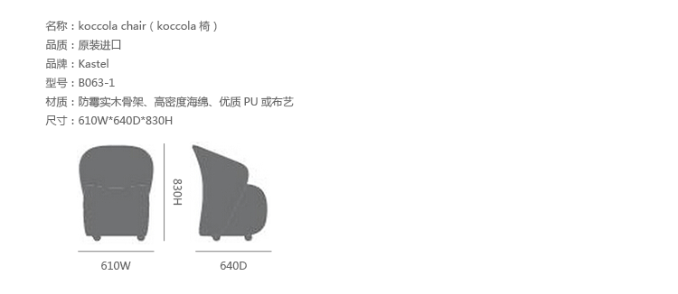 Kastel是一个在室内装饰领域极具影响力的公司,该公司具备高水平的综合生产能力,是一个充满活力的公司。Kastel公司产品多种多样,包括办公座椅,社区座椅和家庭座椅等等。Kastel在对人体工程学进行深刻研究之后,制定了现在的生产线,产品的设计以舒适为主,在生产过程中每一步都严格遵循这一宗旨,为客户提供高性能的产品,满足客户对舒适的基本要求。这也是Kastel公司的经营理念。koccola chair(koccola椅)由设计师为Kastel公司设计的产品,制作采用防霉实木骨架、高密度海绵填充、优质PU或布艺扪面,可以用在等候、交谈及会议室等区域。