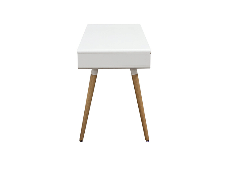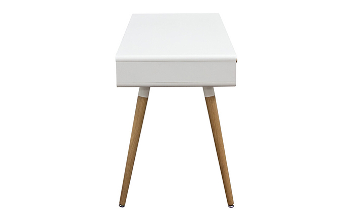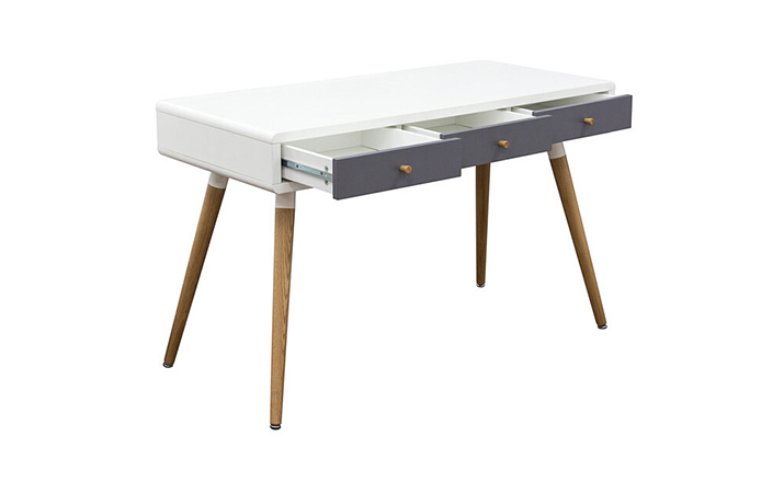 diamond sofa sonic writing desk(钻石沙发声波写字台)本世纪中叶复古声波3抽屉桌,为你家居的装修提供了时尚工作空间。起有着黑色橱柜和橡木抽屉前挡板,酷音效果时尚突出了固体橡树喇叭的腿设计,适用于家庭和工作办公。制作采用精选MDF板基材、进口胡桃或樱桃木皮贴面、实木脚架、彩色装饰边、环保净味油漆喷涂、做工精湛。