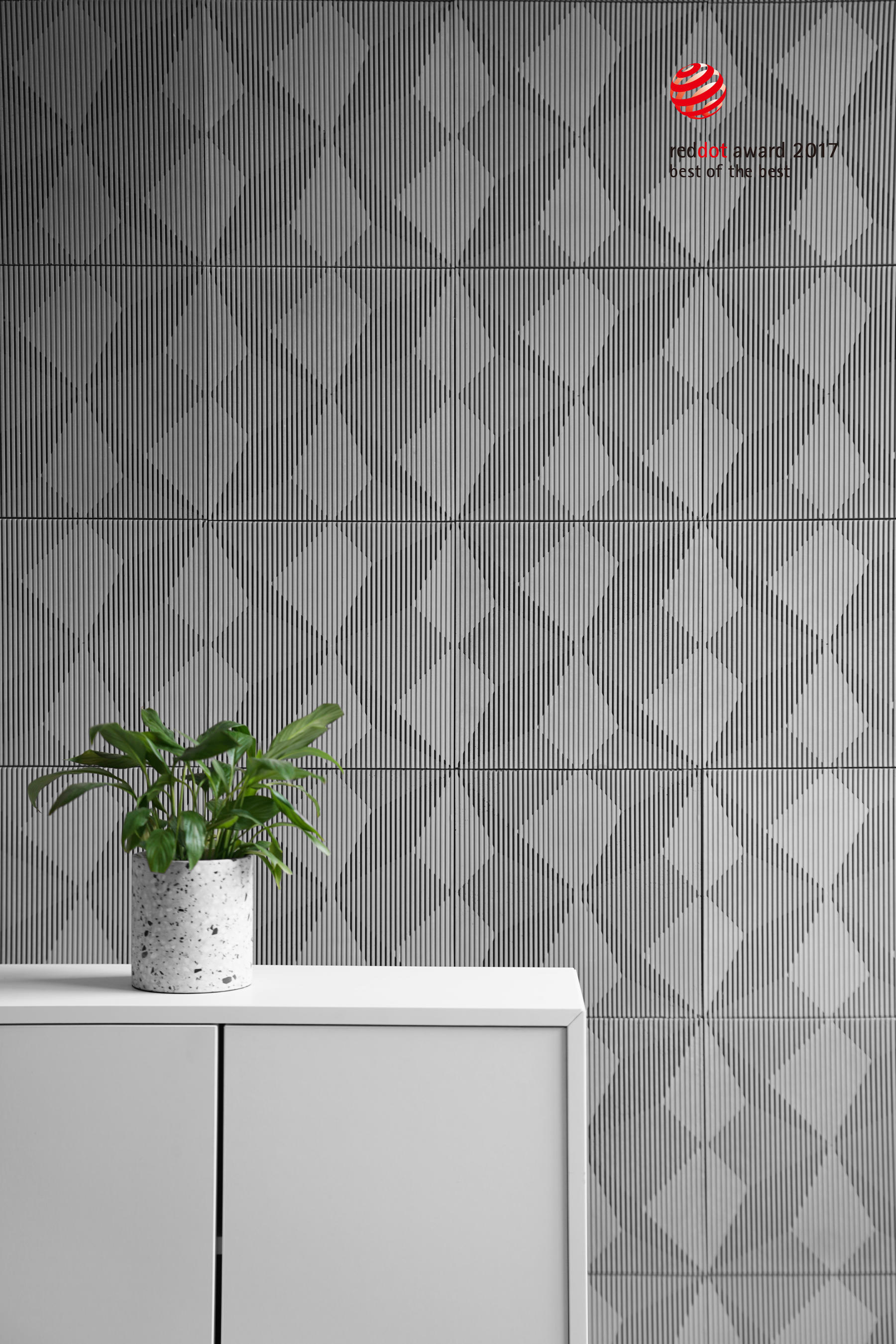 墙砖采用混凝土材料与陶瓷边角料混合灌注,一体脱模而成; 以50%的废弃瓷砖搅碎,充当骨料混合到混凝土材料中; 获红点奖评语: “影”墙砖会因应人视线角度变化,持续地为感官带来令人惊叹的新鲜感。它不断呈现出新的影像,强化作为装饰墙砖的视觉效果。 这些墙砖背后的创新设计理念,乃至成品的耐用性和性价比都令人印象深刻。此外,这产品更是可持续发展理念的一个完美实践。