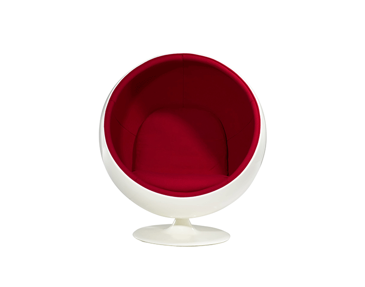 "60年代初,芬兰最大的家具企业 Asko 公司请 Aarnio 设计一种塑料椅以求改变公司多年以木材为主的传统面貌。 1962 年夏天,Aarnio 用新闻纸和浆糊作原材料,在藤编家具启发下,设计出一种适于塑料制作的面貌全新的坐具造型, 1963 年至 1965 年间,Aarnio 用合成材料反复试制他的新型设计,终于推出名为“球体”的看似航天舱的坐椅,并且在 1966年科隆家具博览会上一夜成名。从圆形的球状体中挖出一部分或使它变平,可以形成一个独立的单元座椅,甚至形成一个围合空间。这是 Aarnio的基本创意手法。 Aarnio 完全抓住了那个时代最动人心弦的精神,从而使他的“球椅”成为一种时代的象征。