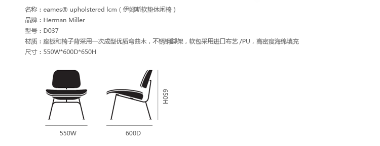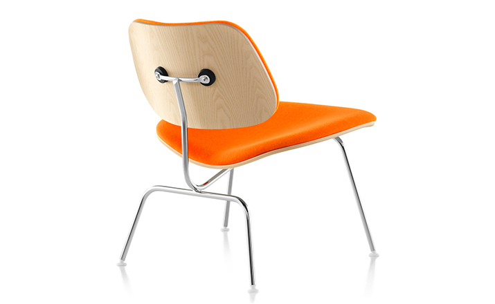 A refreshing variant of the LCM (1946), the Upholstered LCM sports Kvadrat Divina fabric on its front side. This iconic chair began as an experiment in the Eameses'apartment,where they were molding plywood in what they called the“Kazam! Machine.”The machine pressed thin sheets of wood veneer against a heated membrane that was inflated by a bicycle pump. Humble beginnings for what would become one of the world's most widely recognized and highly coveted chairs.Low-slung,with an expertly crafted molded seat and back(no bike pumps are used today),this chair cradles you in a comfortable position.Its form relates directly to the human body and holds no secrets as to how it succeeds technically.The slender rod base provides superior strength,while rubber shock mounts buffer against jarring movement.