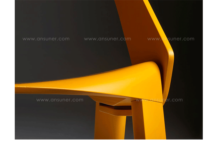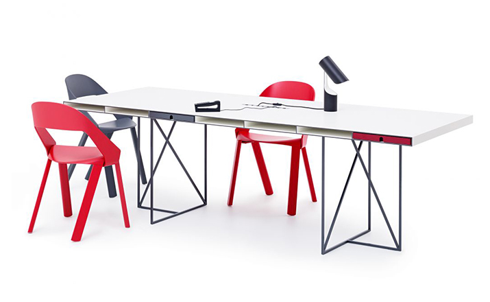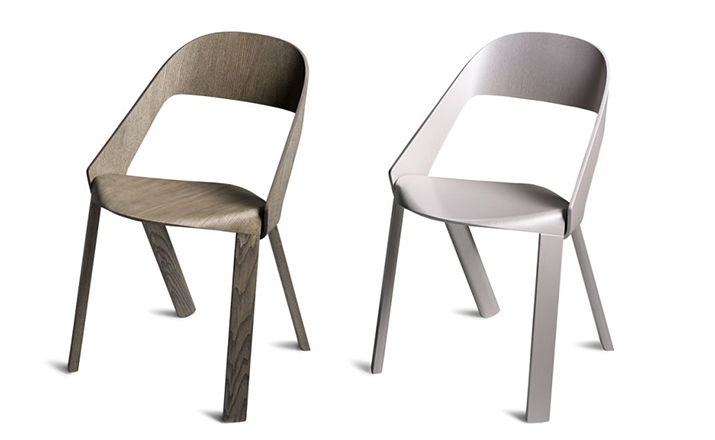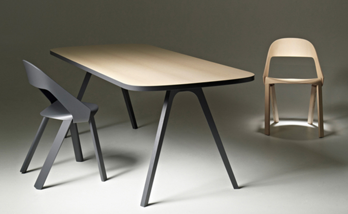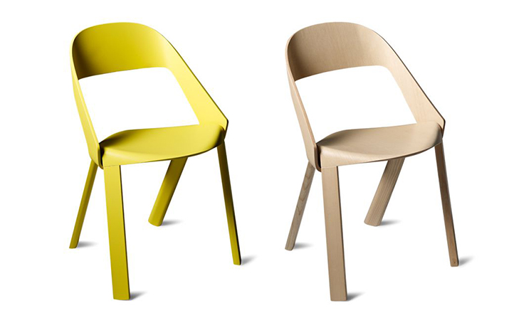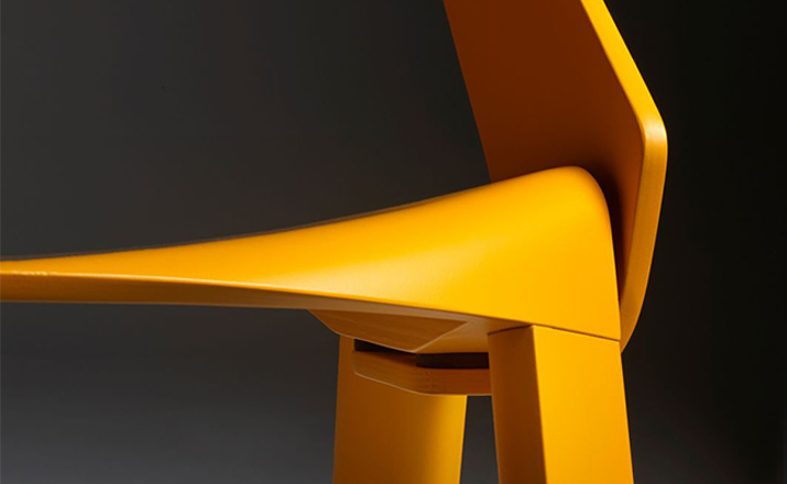 The chair’s design is simple and clear. The seat is bent down on four sides and holds the legs and the back on both outer sides.Molded plywood shapes the aesthetics of the chair.Pressing plywood into shape is an old technique that has seen a rapid development with the introduction of CNC milling technology in recent years.Complex molded parts can be inserted in milling tools and pressed directly with the plywood. This has opened new paths for shape and design.As with the chair Wogg 50,whose structural center is the core pressed in below the seat shell.