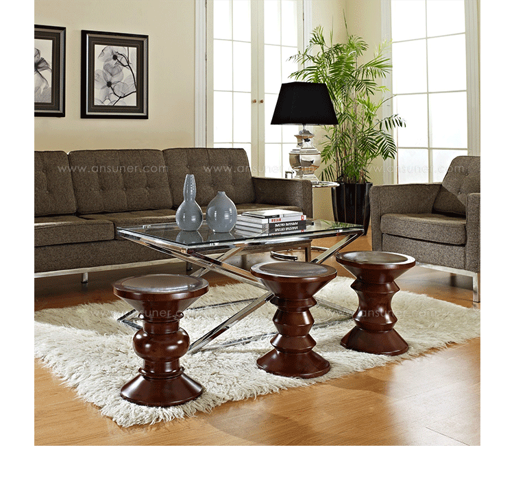 Eames Walnut Stool(伊姆斯胡桃木凳)是由美国著名大师伊姆斯夫妇(Charles and Ray Eames)于1960年专为纽约的Time-Life大楼的厅堂设计的凳子,灵感来自于国际象棋,独特个性的造型不仅精致美观,除了有着凳椅的作用,还能当做矮桌、装饰品。Eames Walnut Stool(伊姆斯胡桃木凳)在弧线坐面坐上去非常的舒适,厚实木结构,简单,是餐厅、酒店、家庭首选的艺术品家具,也是一个非常值得珍藏的家具。