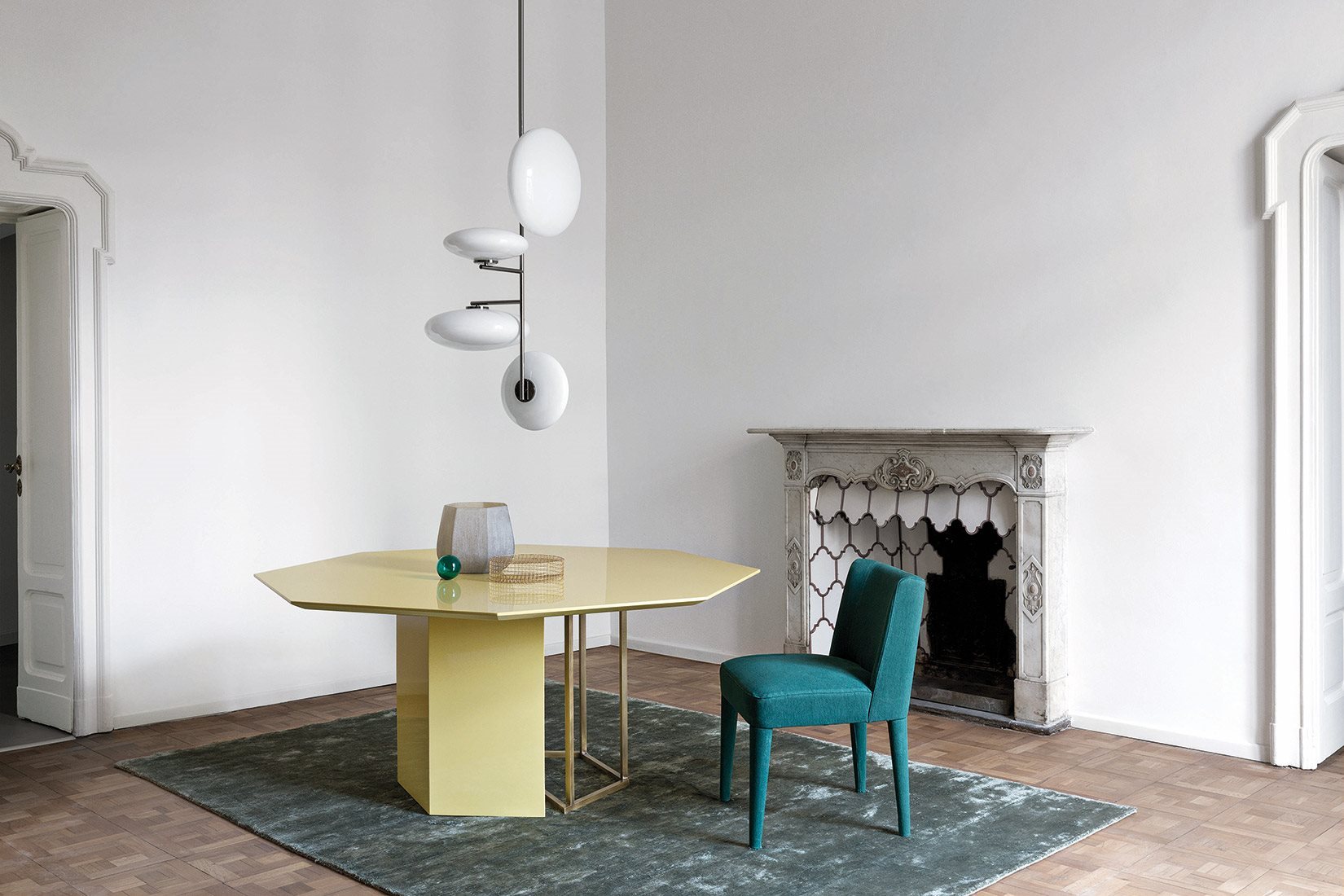 光结构化在黑色金属基地或古铜色的黄铜完成匹配固体体积覆盖着各种大理石、木材或漆完成,自由结合不同形状的顶部给生命一个相互作用的固体和空洞。