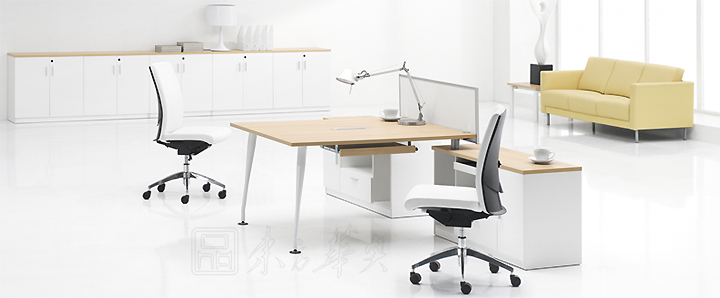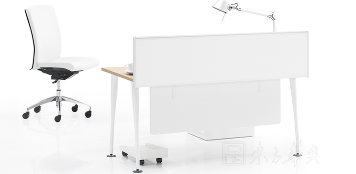 ※  别致的桌面线条配以纯白圆形钢铁柱脚或板脚,彰显个人品味。个人配套包括边桌、流动抽屉柜、前档板、高柜、矮柜等使台子更瑧完美。