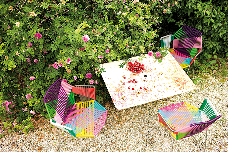 安蒂博迪(Antibodi)的钢管框架成为设计师用于创意改造的起点。框架被包裹和变换,座位根据所使用不同颜色的材料呈现不同的个性。两到三种颜色的线条以螺旋的方式将钢管包裹起来,形成了一种有趣的颜色复杂的设计。