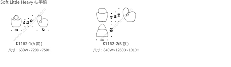 Soft Little Heavy 扶手椅 系列尺寸/示意图