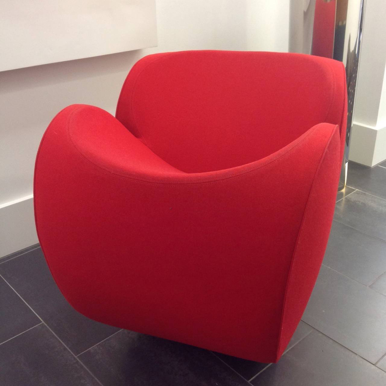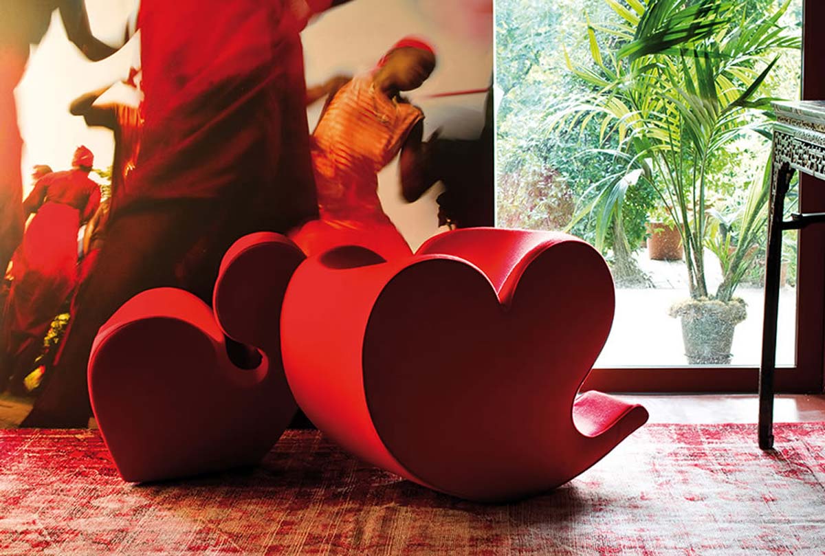 由Ron Arad在1988年设计的一个大的简单的钢椅,展示了一种简单的形式,可以在不影响设计原则的情况下,通过对材料和生产过程的重新解释而被翻译。从建设性的姿态获得的模型变成了工业生产;视觉的柔软和丰满的体积,舒适。更容易探索旋转模制和聚乙烯的使用;在冷泡中柔软的版本,用聚酯纤维包覆,触觉表面的转换;在元素的集合中,形态学和动态形式。