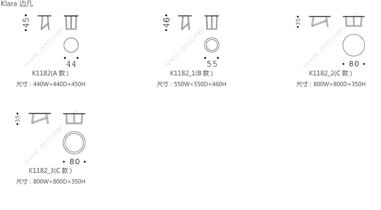 Klara 边几 系列尺寸/示意图