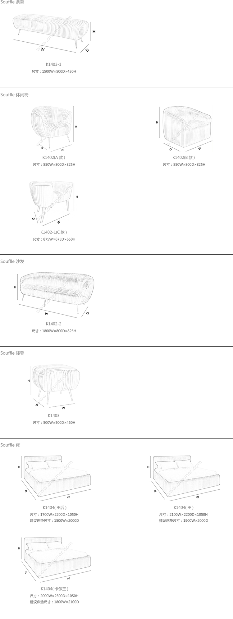 Souffle 长凳 系列尺寸/示意图