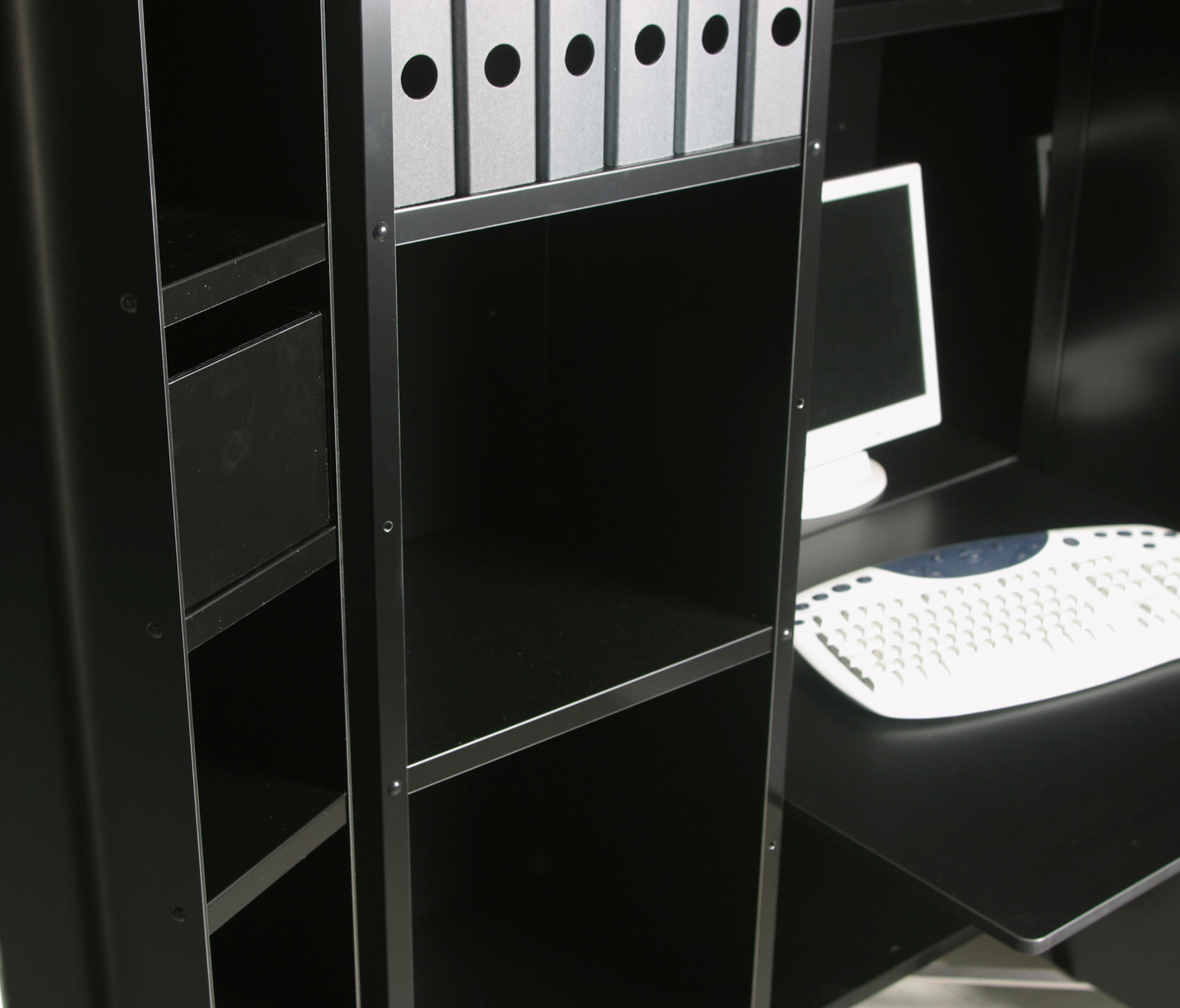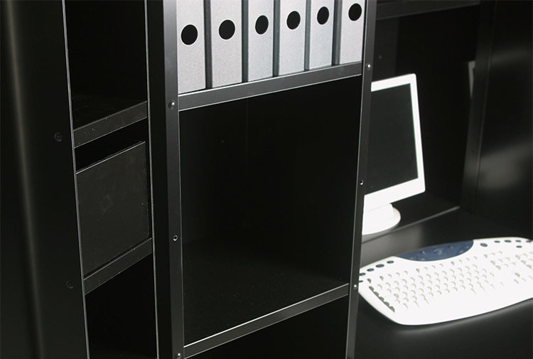 外部采用光泽漆面,内部包括丝网印刷,适用于铣制门的表面,采用双色光泽装饰漆面装饰,可隐藏货架,抽屉和折叠货架。