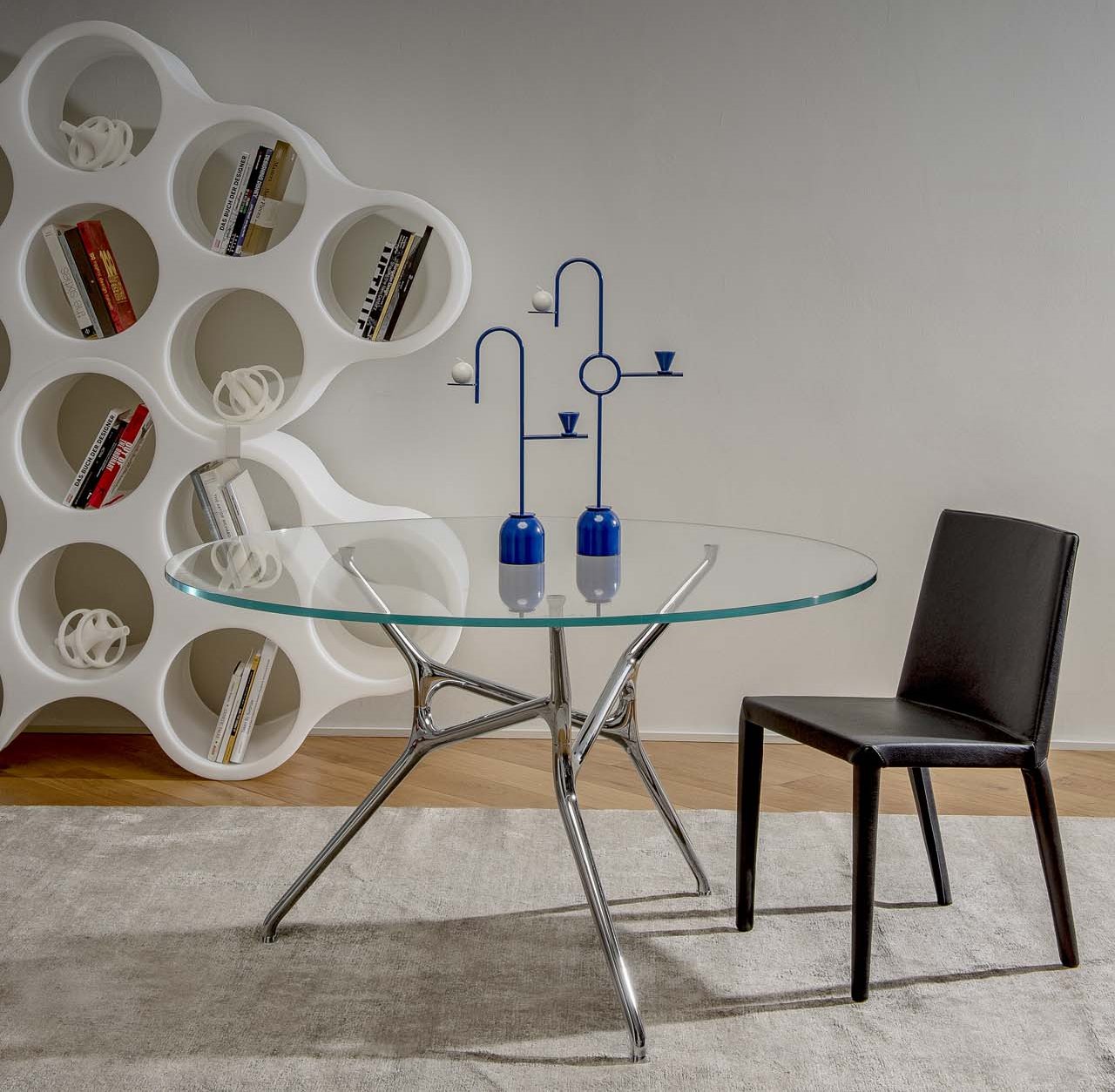 Branch Table的结构由相同的由压铸铝制成的分层元件组成:对于该产品,设计师Jakob Wagner在连续运动中创建了一系列无缝互连元件,使基座简单而复杂,并使桌子稳定轻便。