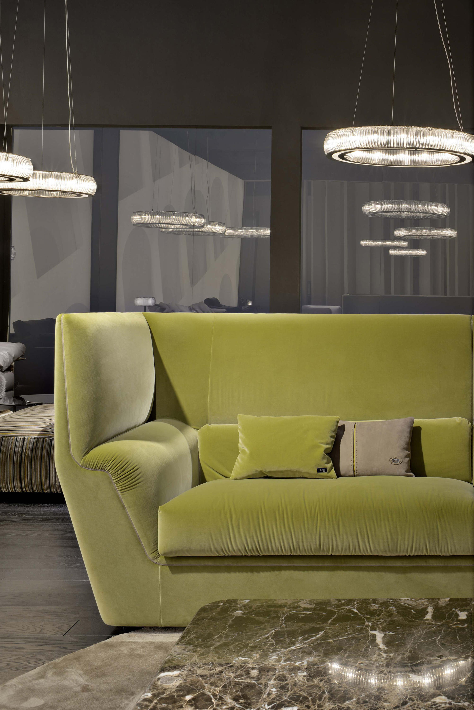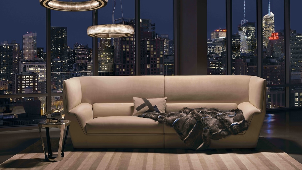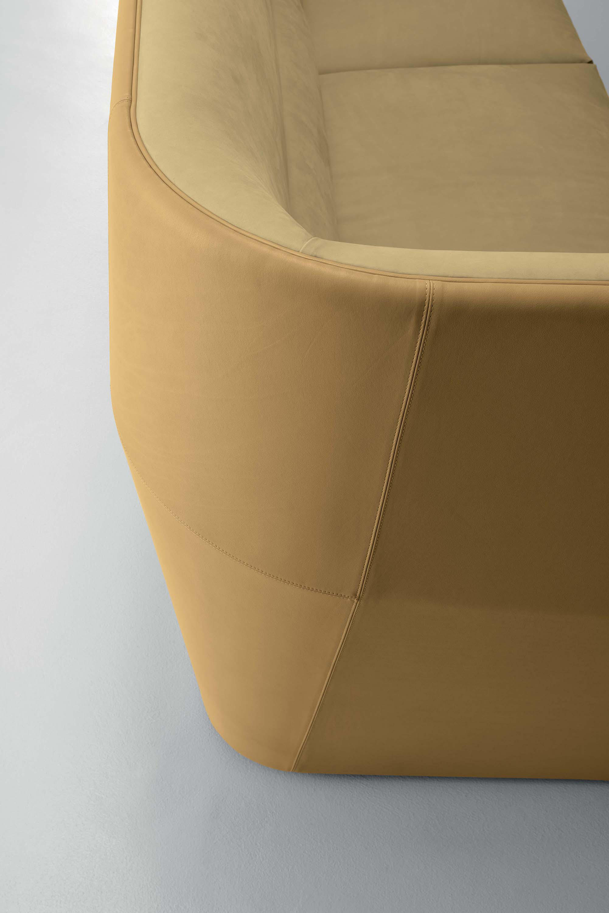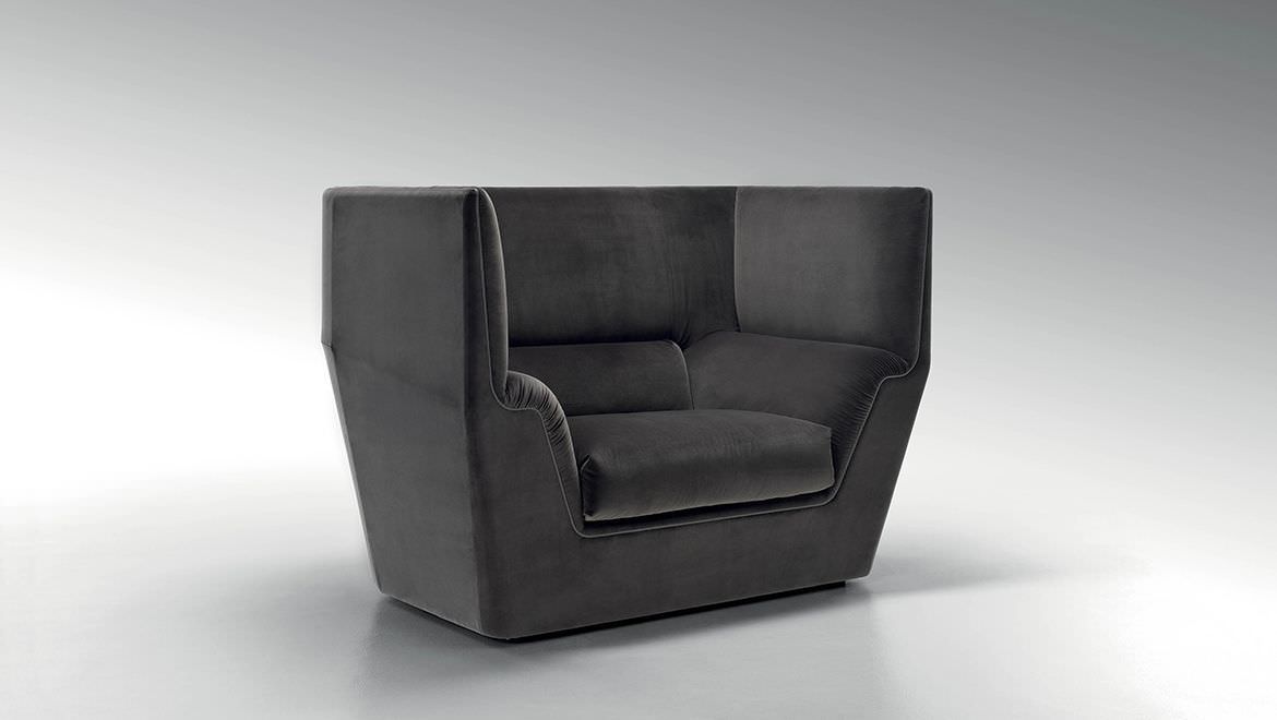 Cocoon stems from the will to create a very dramatic furniture collection, meant to become the protagonist of the ambience and at once an island of visual and acoustic intimacy. The sofa takes the characteristics of a true architectural space and grants remarkable privacy. The elements in the Cocoon family offer the opportunity to live a comfortable and cosy experience thanks to the softness and generous proportions.