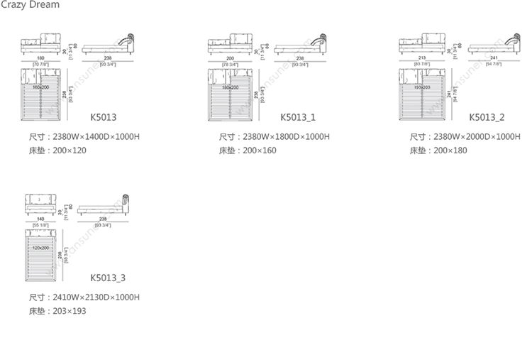 Crazy Dream 系列尺寸/示意图