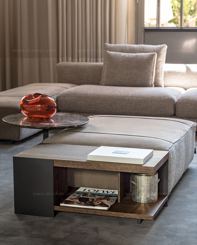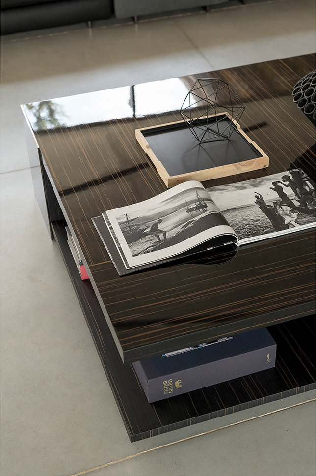 Noth桌子可以为客厅提供功能性和现代风格。金属结构是由云母棕色、氧基灰色或黑色的镍制成,用于固定由莫卡橡木、柚檀木或光泽乌木制成的桌面。开放的空间和几何设计,使Noth桌子可随意的安放在客厅或和沙发进行搭配。