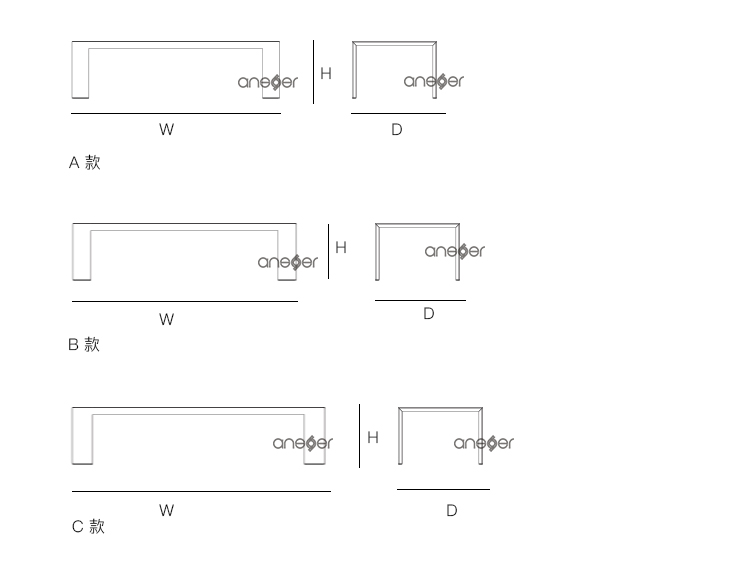 两侧和顶部的内部锚固结构可确保其可装配性和稳定性。桌脚采用哑光灰色涂漆铝材料。