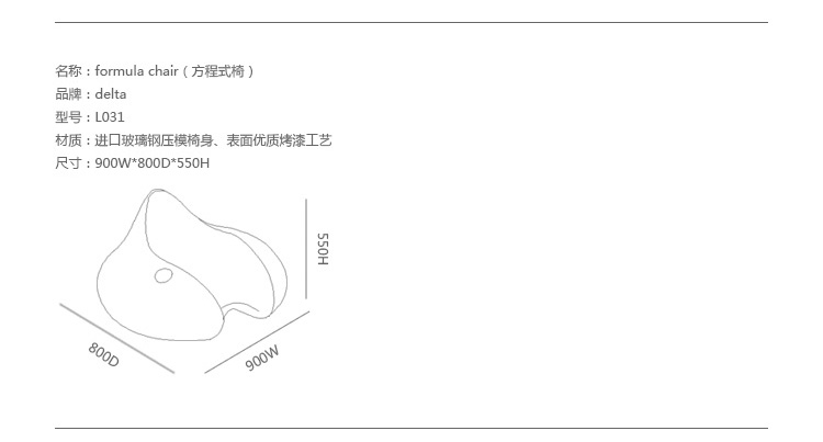 Formula Chair(方程式椅)极具玩味的方程式赛车坐感,它的设计师Eero Aarnio本身就是一名F1方程式的车迷,所以才有了Formula Chair的坐感及其曲线丰富的造型。椅子采用玻璃纤维树脂合成玻璃钢,经过精细打磨,再表面施以多层喷涂烤漆。表面有亮光及哑光两种表面可选。可室内、室外使用,可以为居家环境、商业空间、公共艺术等带来别开生面的艺术风格。