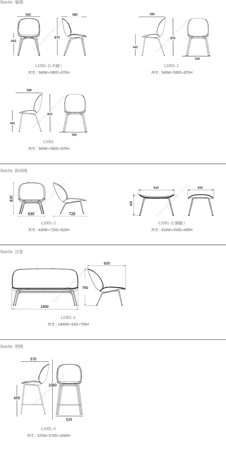 Beetle 餐椅 系列尺寸/示意图