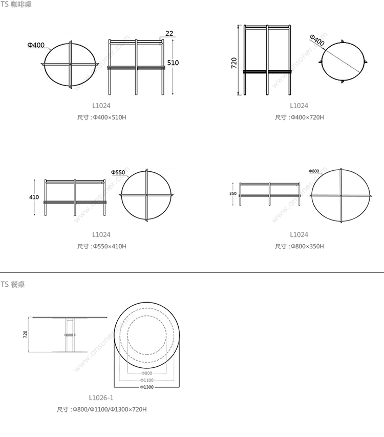 TS 咖啡桌 系列尺寸/示意图