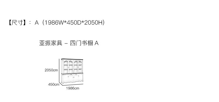 亚振家具 - 四门书橱 产品尺寸/示意图
