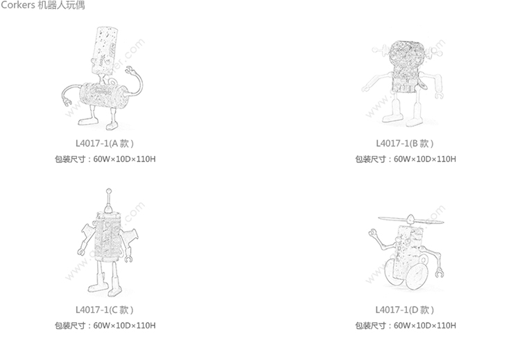 Corkers 机器人玩偶 系列尺寸/示意图