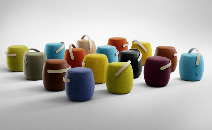 来自斯堪的纳维亚studio vision A&D的设计师和建筑师mattias stenberg设计了“carry-on”便携式小家具。这个设计的灵感来自于传统木桶的形式,设计师在桶表面包裹了一层毛绒布软垫,并搭配一个实木把手。“carry-on”有多种功能,它可用作小凳,脚凳或是摆放物品的台座。这个设计在2012年斯德哥尔摩家具/灯具展览会(stockholm furniture and light fair)上展出。同时,这个设计的展位也“greenhouse”展场的一部分,专门用来展示年轻设计师的作品。