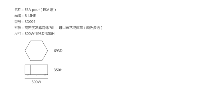 ESA Pouf(ESA墩)是日本设计师Kazuhide Takahama设计的,高浜和秀(Kazuhide Takahama)1930年出生在日本宫崎县,1953年毕业于东京工业大学的建筑系,之后几年便到意大利发展,在他的作品中就能够看到日本与西方文化相结合的特点。ESA Pouf(ESA)是一六角形坐垫(凳),极富个性,并且能根据您的想象力和创造力随意组合。制作采用进口玻璃钢内胆一次成型、高密度海绵、进口布艺或皮革(颜色可选)。