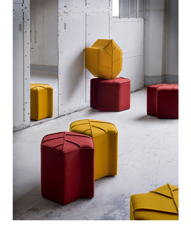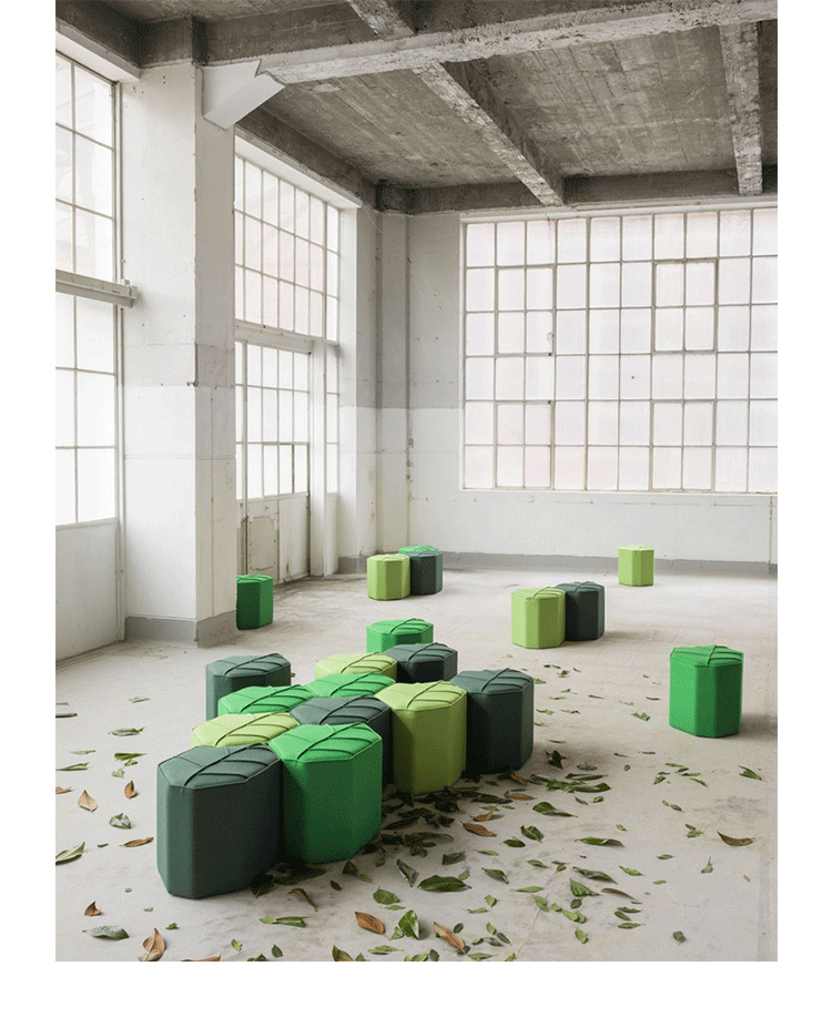 Leaf Pouf(树叶墩)是设计师Nicolette设计的作品。大多数的脚凳都只注重于形式和形状,很少能兼具椅子的功能。Leaf Pouf(树叶墩)不仅仅是一个脚凳,同时它也是一个极具吸引力的座凳,由经验丰富的工匠精心制作,精美别致,用料高级,采用高级Kvadrat羊毛(皮革)扪面。他们可以单独使用,作为一个独立的个体,在任何地方都是非常特别且令人印象深刻的,不会淹没在环境中。他们也可以多个组合,从而形成一个沙发床,还不失协调性和美感。无论用在任何地方,他们都可以满足您的创意,想法,发挥您的想象力自由组合。