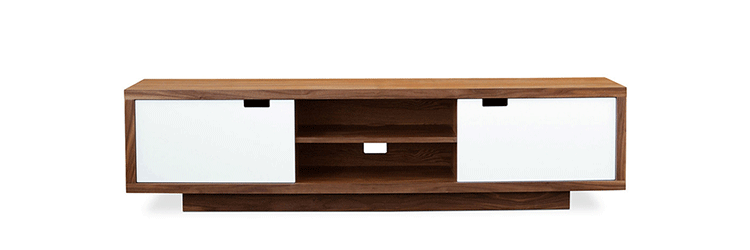 wilson media stand(威尔逊媒体柜)专为现代娱乐室所设计,制作混合温暖,核桃外观与白色多外套漆门。设有两个中央腔组件存储,后面板打开以便电缆管理。制作采用精选MDF板基材胡桃木或水曲柳木皮贴面、胡桃实木或水曲柳实木脚架、环保净味油漆喷涂,做工精湛。