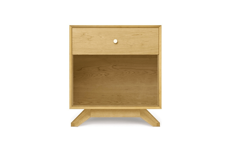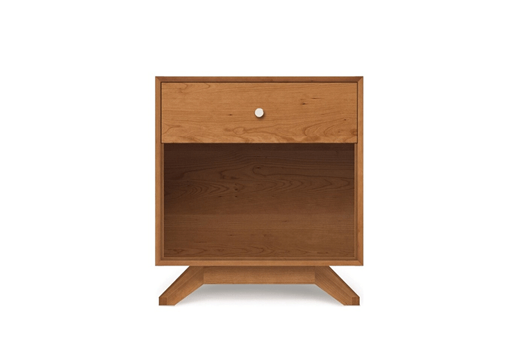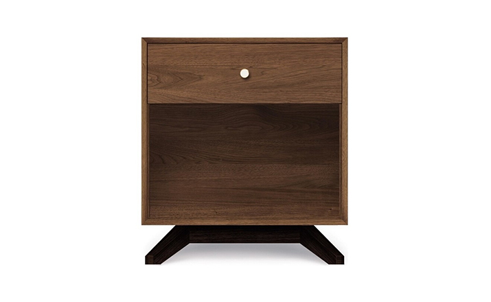 astrid 1-drawer nightstand(阿斯特丽德1抽床头柜)宽大的八字形脚架非常吸引人注目,制作阿斯特丽德1抽床头柜并非易事,它其实是一个大工程,同时能引发无限期望和激情,安放在阿斯特丽德床旁边看起来非常美妙,制作采用精选MDF板基材、进口美洲胡桃或水曲柳或枫木皮贴面、实木脚架、环保净味油漆喷涂、做工精湛,完全对味。
