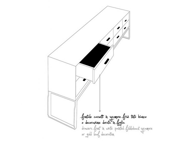 4或8抽屉衣柜在核桃卡纳莱托木(fin.11)。 抽屉方面都有两个版本:白色小提琴状的东西画梧桐或者金箔装饰。 抽屉里配有沉默系统总提取后退指南。 处理和金属基体上铜的颜色。