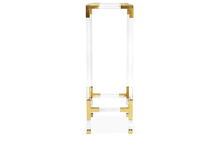 从luxe透明丙烯酸与拉丝黄铜或抛光镍口音,或穆迪烟丙烯酸与抛光镍装饰。为书籍或展示你最喜欢的作品而举行的聚会。