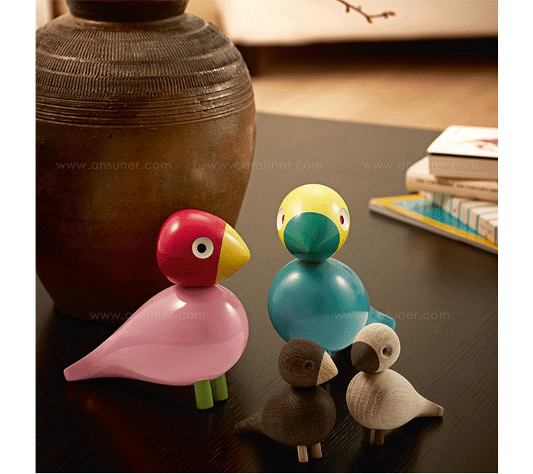 1950年的某个春天下午,设计师Kay Bojesen坐在哥本哈根的自家阳台晒着太阳,欣赏枝头的鸟儿,突然一时兴起提笔画下他们一家六口的和乐蓝图,并赋予每隻鸟儿不同的个性与回忆。