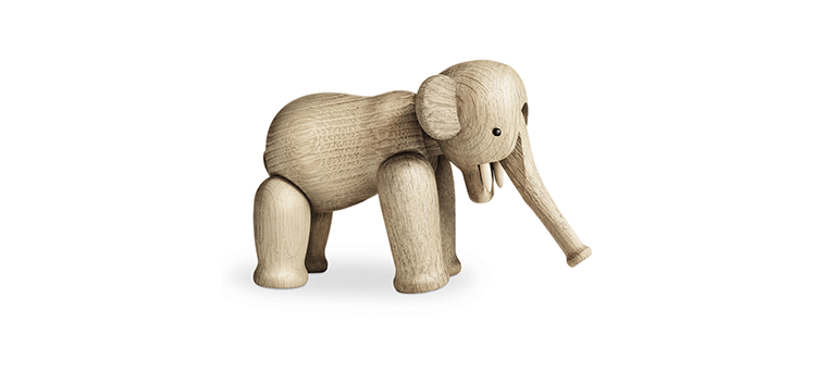 Kay Bojesen Elephant(Kay Bojesen 大象)设计于1953年,出自丹麦设计大师 Kay Bojesen 的设计作品,精致的木制动物系列,是 Kay Bojesen 为人熟知的珍藏作品系列,采用不同的橡木、枫木、柚木等原木素材,保留木材的独特纹理,刻画出各种不同让人莞尔一笑的动物姿态,跳脱生活中的烦琐与紧张,简单的玩偶,轻松的神情,带您回归孩时的天真与简单快乐。精致而限量珍藏的作品系列,适合您作为桌面摆设,或是作为送礼小物,分享您生活中的快乐写意。