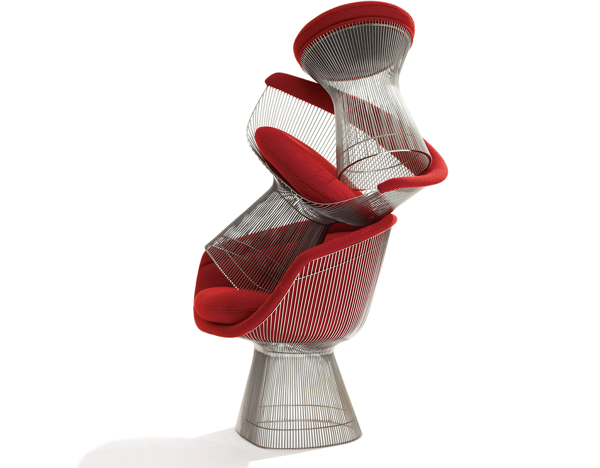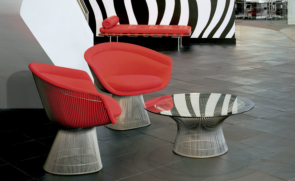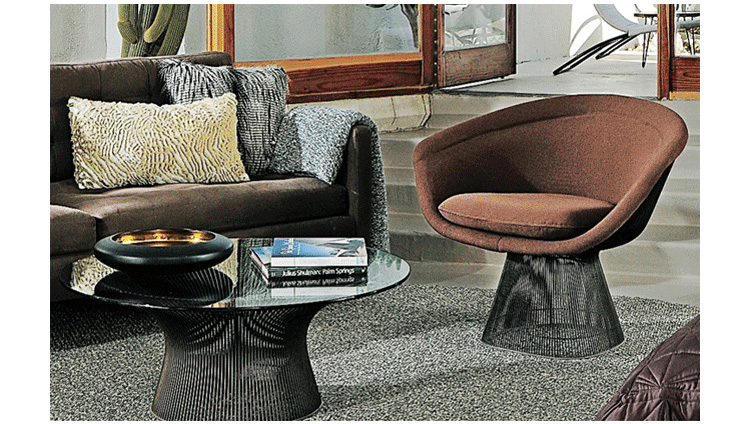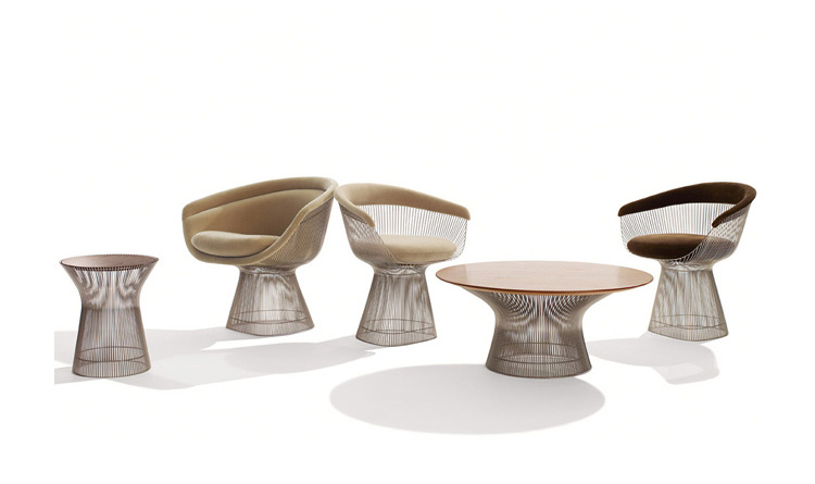 1966年榮獲 American Institute of Architects International Award 美國建築協會國際大獎的 Platner Chair,在設計師 Warren Platner 的創意下,將鋼絲雕塑轉化成一系列收藏級的傢俱,創造了現在被認為是當今時代的設計圖標。