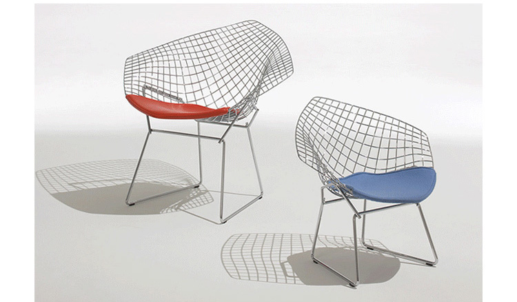 Bertoia Diamond Chair 是 Harry Bertoia 延伸其珠寶設計與金屬製作概念的一件兼顧實用與藝術的作品,精緻的外觀下,卻不失椅子功能上的舒適及耐用性