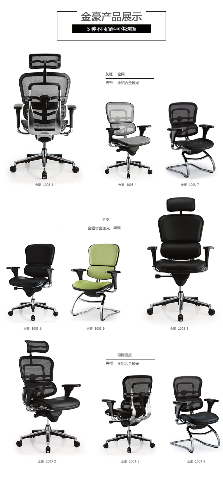 金豪系列采用完全性多功能调整设计,从头枕、椅背、扶手与座垫可进行全方位的调整